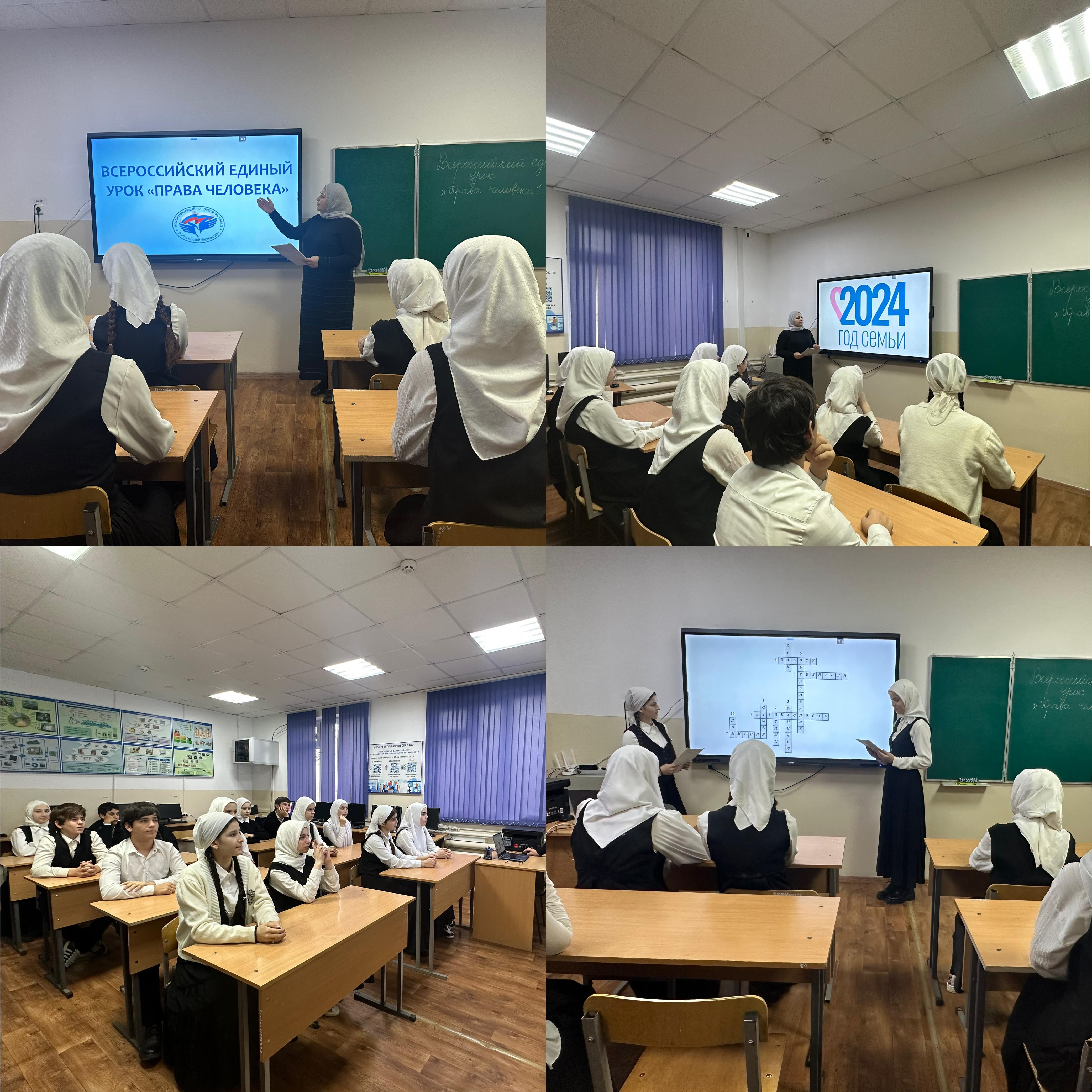 06.12.20245 декабря, в МБОУ «Хангиш-Юртовская СШ» с обучающимися 8-9 классов был проведен Всероссийский единый урок «Права человека». Единый урок ежегодно проводится в рамках празднования Дня прав человека (10 декабря) по инициативе Уполномоченного по правам человека в Российской ФедерацииМоскальковойТ.Н.В 2024 году Единый урок посвящен объявленному Президентом Российской Федерации В.В. Путиным Году семьи и Году волонтерского движения в СНГ.