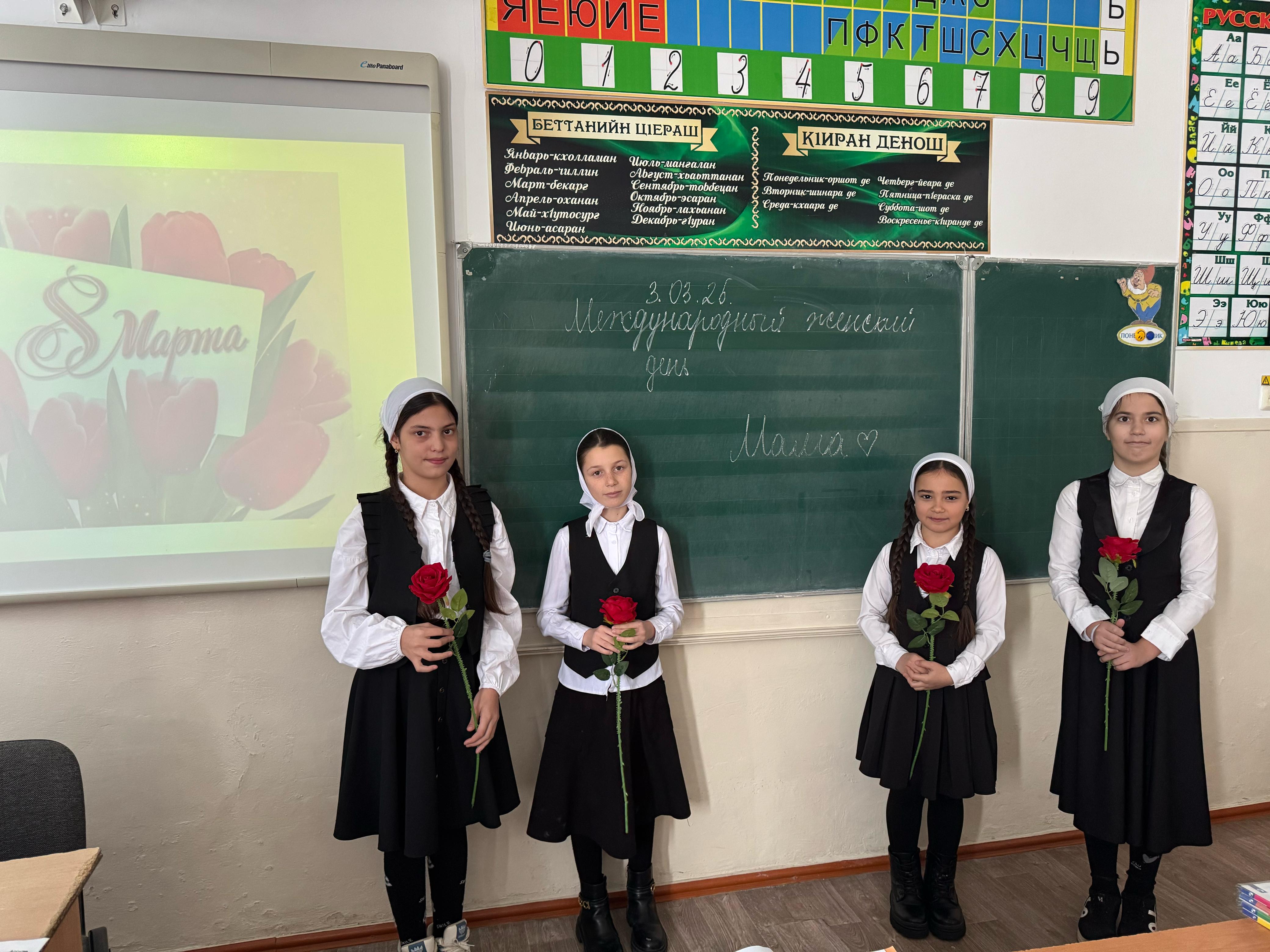 В МБОУ "Хангиш-Юртовская СШ" прошло внеурочное занятие "Разговоры о важном", посвященное Международному женскому дню 8 Марта