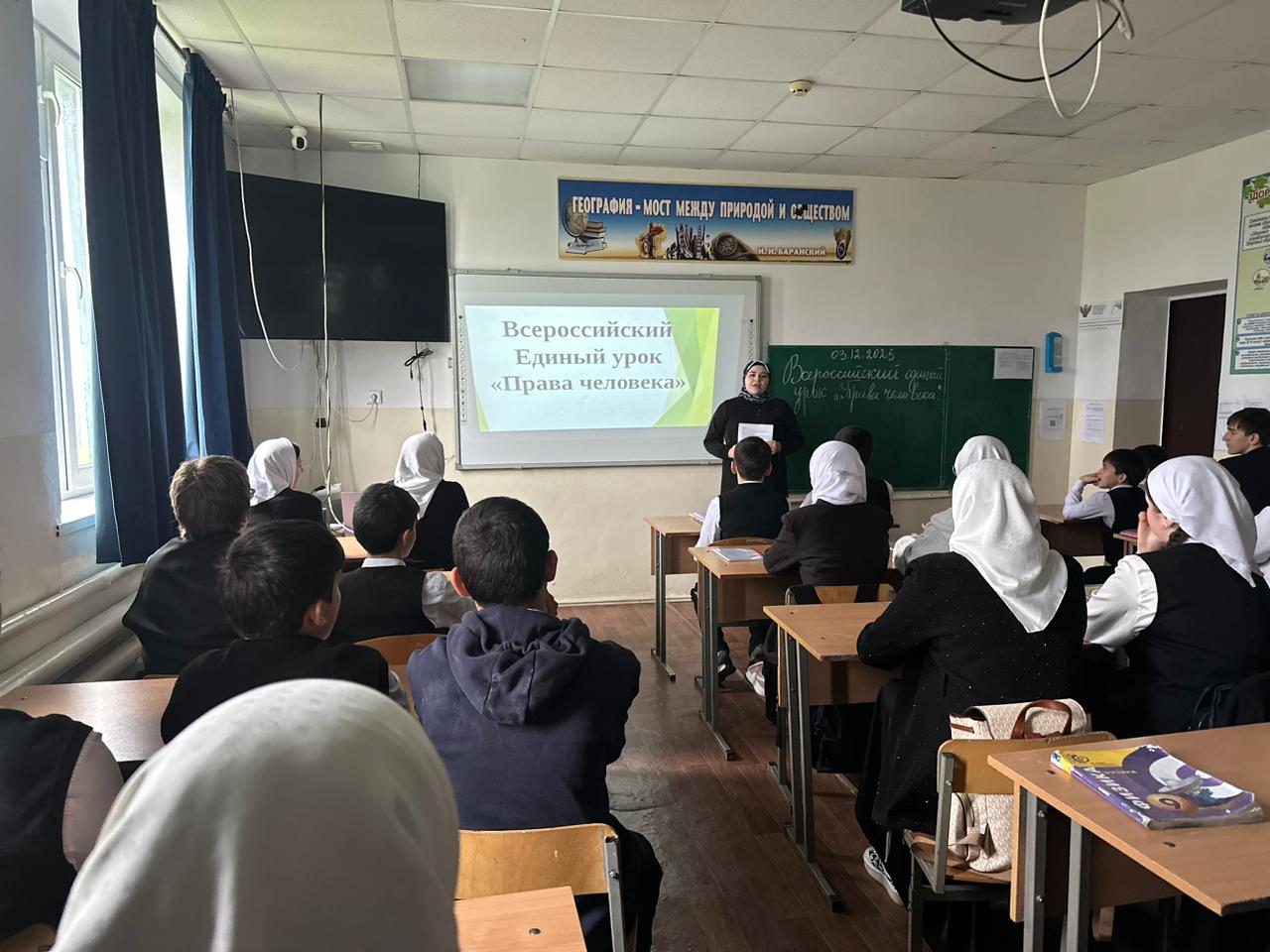 03.12.2025 в МБОУ "Хангиш-Юртовская СШ" с обучающимися 7-9 классов проведен Всероссийский единый урок "Права человека". В 2025 году Единый приурочен к объявленным Президентом РФ В.В.Путиным Году защитника Отечества и 80-летию Победы в Великой Отечественной войне 1941-1945 годов.