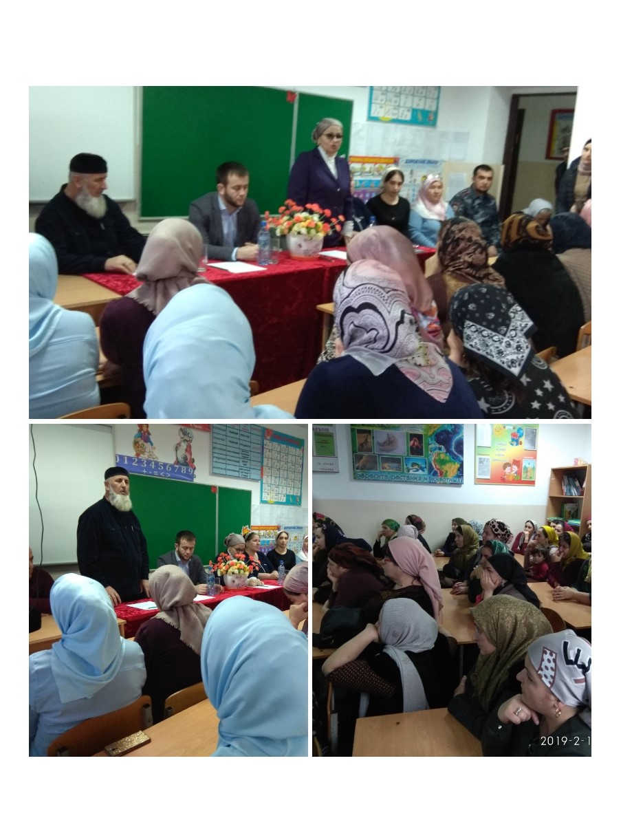 11.02.2019В МБОУ "Хангиш-Юртовкая СШ" прошло общешкольное родительское собрание, на котором присутствовали начальник УО Куразова М.И,заместитель Главы Администрации города Гудермес Таймаев Т.Х, инспектор ПДН Шовхалов И.Р. На собрании обсуждались наиболее острые вопросы в деле воспитания и обучения подрастающего поколения.